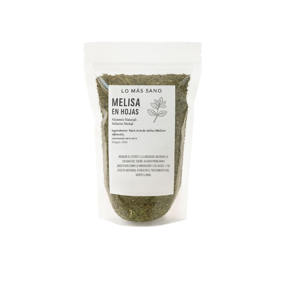 Melisa en hojas naturales de alta calidad, conocida por sus propiedades relajantes y digestivas. Perfecta para preparar infusiones aromáticas que ayudan a calmar el estrés y mejorar la digestión.